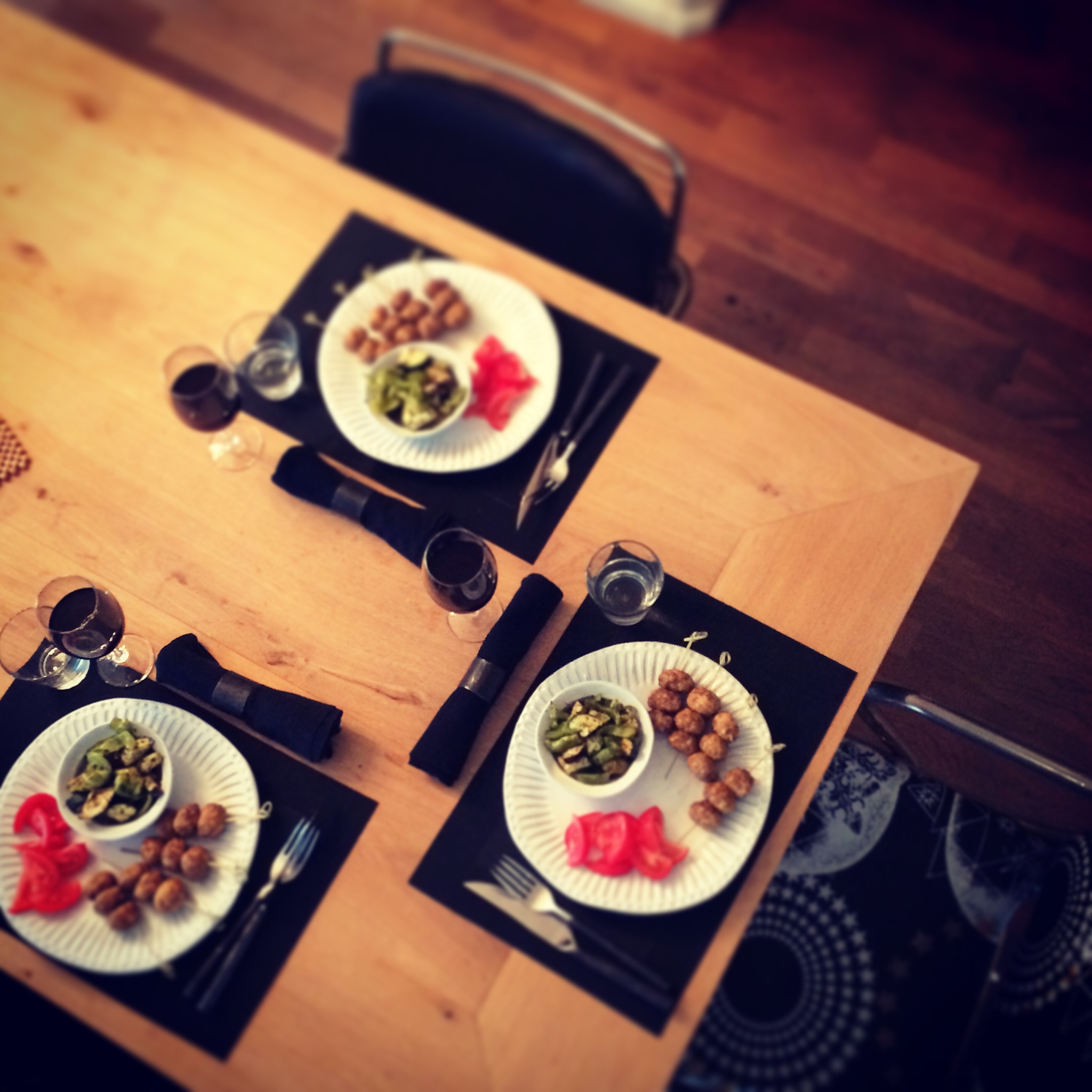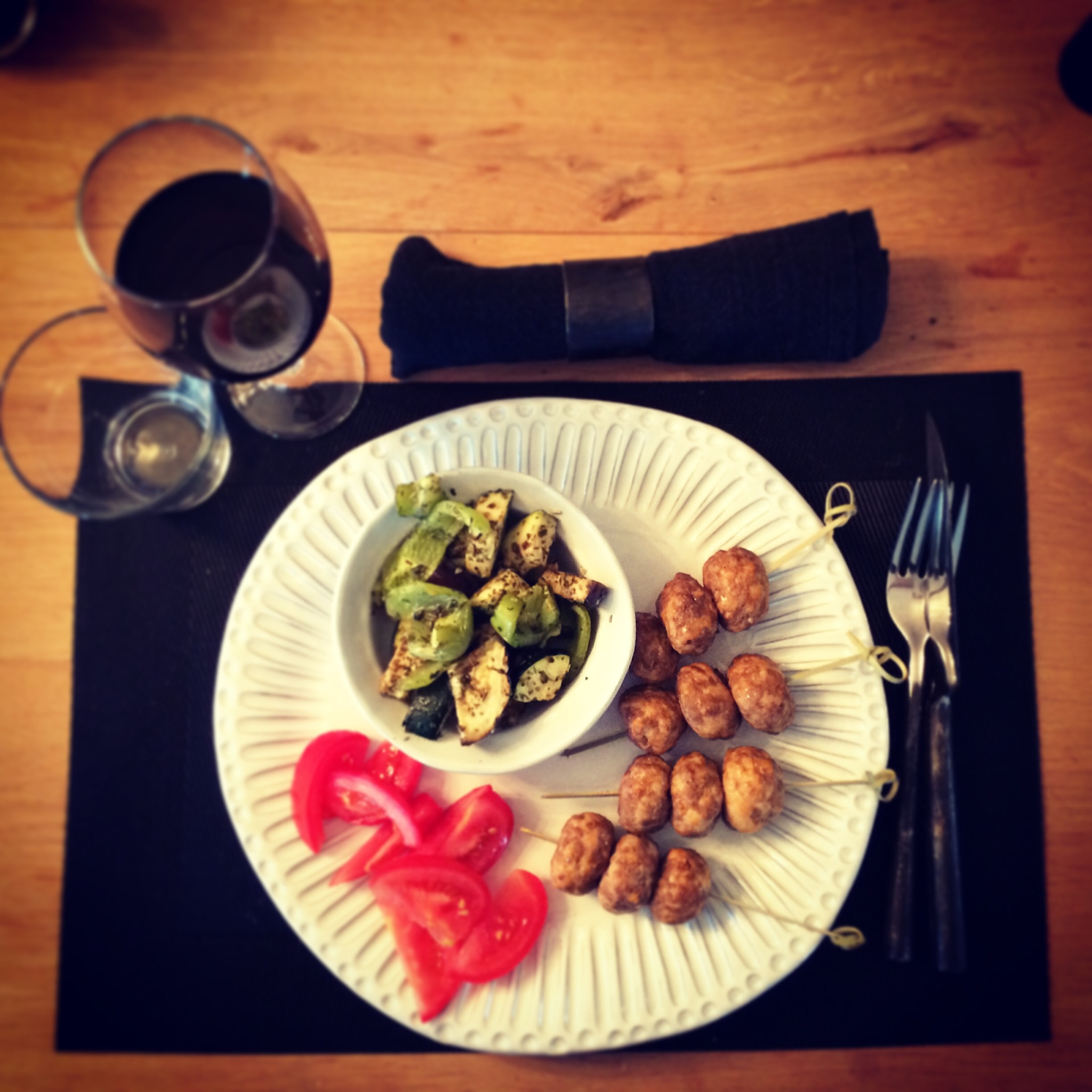 Mix it all together in a bowl and be sure all ingredients are mixed well. Preheat the oven on 200 degrees Celcius. Cover an oven tray with baking paper and start to roll the meat balls by hand. Put them on a stick by 3 (to avoid the wooden sticks to get burned in the oven it is the best thing to put them under the water for about 30 minutes before using them).