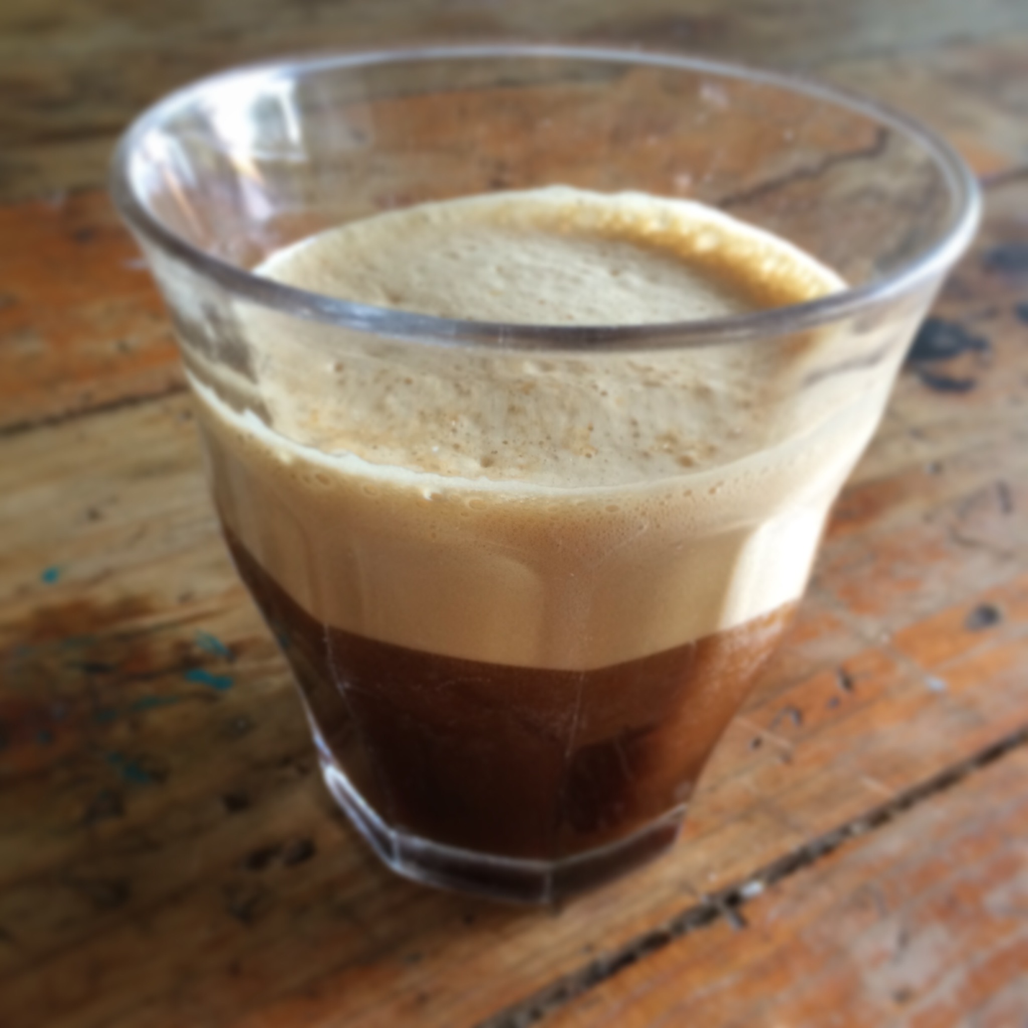 Recipe; (4 cups) You need 1 (Italian) caffetiere and make 4 strong espresso-moka coffees with it. Get a 10 cubes of ice and but them in the blender, poor the hot coffee over the ice cubes and add some brown sugar to taste. Blend it all till the cubes are melted away and you get a nice foam on the coffee! Poor into 4 glasses and serve cold! Nothing better on a hot day! Enjoy!